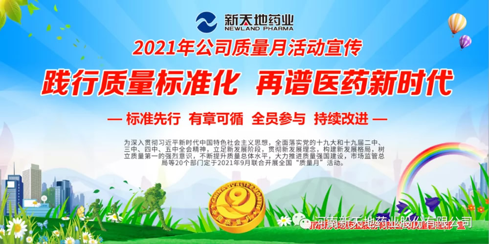 每年9月为全国“质量月”,“质量月”是在政府有关部门的倡导和部署下,由全社会尤其是广大企业积极参与的年度专题活动,旨在提高全民质量意识与质量管理水平。根据国家质量月活动安排,结合公司发展战略,提升员工质量意识,增强企业凝聚力和市场竞争力,2021年“质量月”公司活动主题为“践行质量标准化,再谱医药新时代”。围绕“做救人药、做平价药、做良心药、做放心药”使命,以质量、品牌、标准、服务、诚信和效益为重点,实现公司年度质量目标。本次质量月活动旨在营造全员关注质量氛围、提高质量意识,从而提升企业质量管理水平和制造技术水平。质量月期间,公司质量管理部将结合活动主题,创新形式,扎实开展一系列质量专题活动。